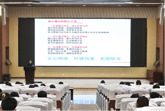 陈副书记强调,清正廉洁是中华民族的传统美德,是社会主义核心价值观的重要内容,更是高校立德树人的重要要求,是大学生成长成人的基石。大学生是未来公职人员的主要后备群体,青年学生更有机会成为社会各行各业的中坚力量。要增强抵御腐败的免疫力和拒腐防变的良好心理素质,树立报效祖国、服务人民的信念,提高自身道德自律意识,这既是全社会反腐倡廉的重要组成部分,也是青年学生实现自我的内在要求。她从守住政治关、权力关、交往关、诚信关、纪律关5个方面讲述了清正廉洁的主要内容,要求我院毕业生从强化思想引领、彰显廉洁本色,夯实思想根基、树立廉洁理念,投身廉政实践、弘扬廉洁风尚3个角度践行廉政之道。