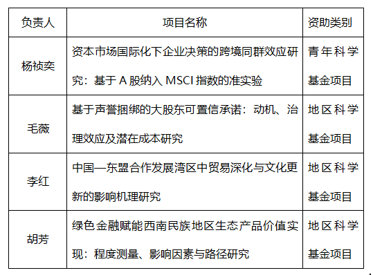 8月23日,国家自然科学基金委员会公布了2024年度国家自然科学基金项目评审结果。我校中国—东盟bat365中文官网登录入口教师的4项课题获2024年度国家自然科学基金资助。此次获批项目包含地区科学基金项目3项、青年科学基金项目1项。