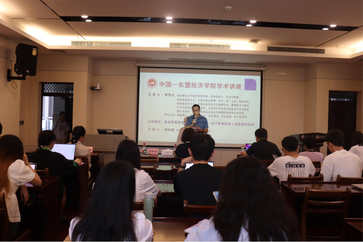 2025年5月23日上午,我院在A218会议室举办中国—东盟bat365中文官网登录入口学术讲座,北京邮电大学经济与管理学院曾雪云教授应邀以“数据资源的开发利用、资产确认及市场定价”为题,为我院师生做学术讲座。讲座由梁权熙副院长主持,学院五十余名师生参与。