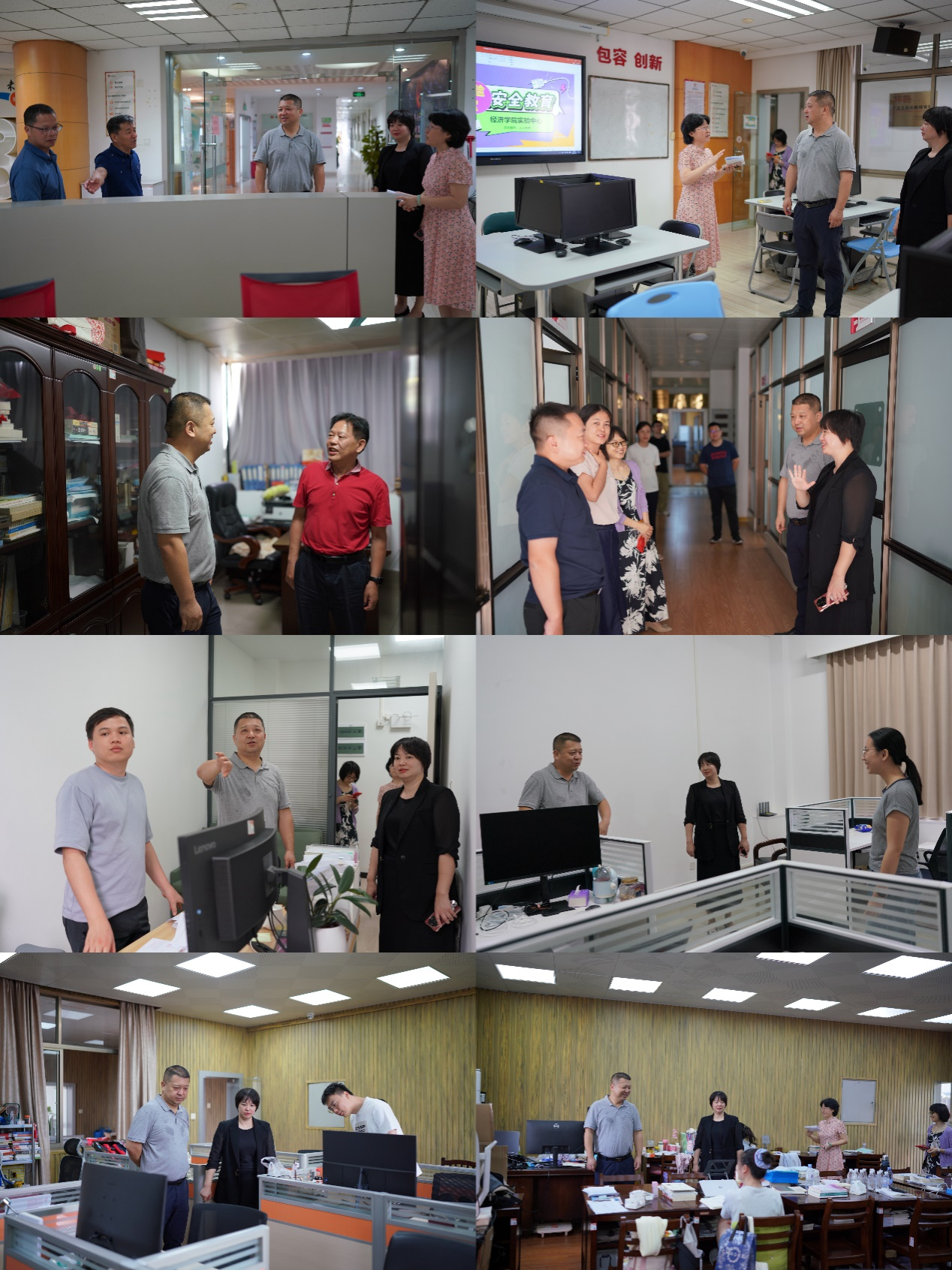 领导班子先后走访实验中心、多媒体教室、各系办公室、教师工作间和研究生学习室等教学核心区域,细致检查实验设备运行、安全管理及课程准备情况,重点关注多媒体教学设备维护状态,并对师生办公学习区域的用电安全、环境设施等进行逐项排查。对现场发现的用电隐患,院领导即时提出整改要求、明确责任落实,真正做到“检查一处、放心一处”。