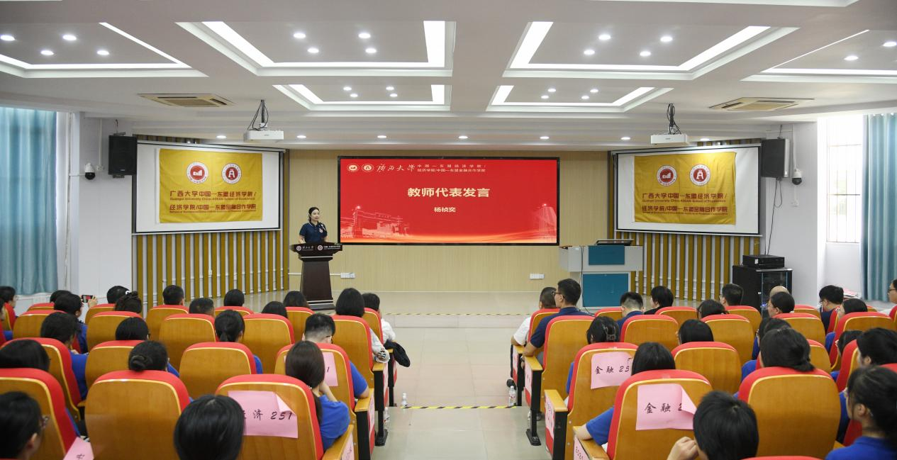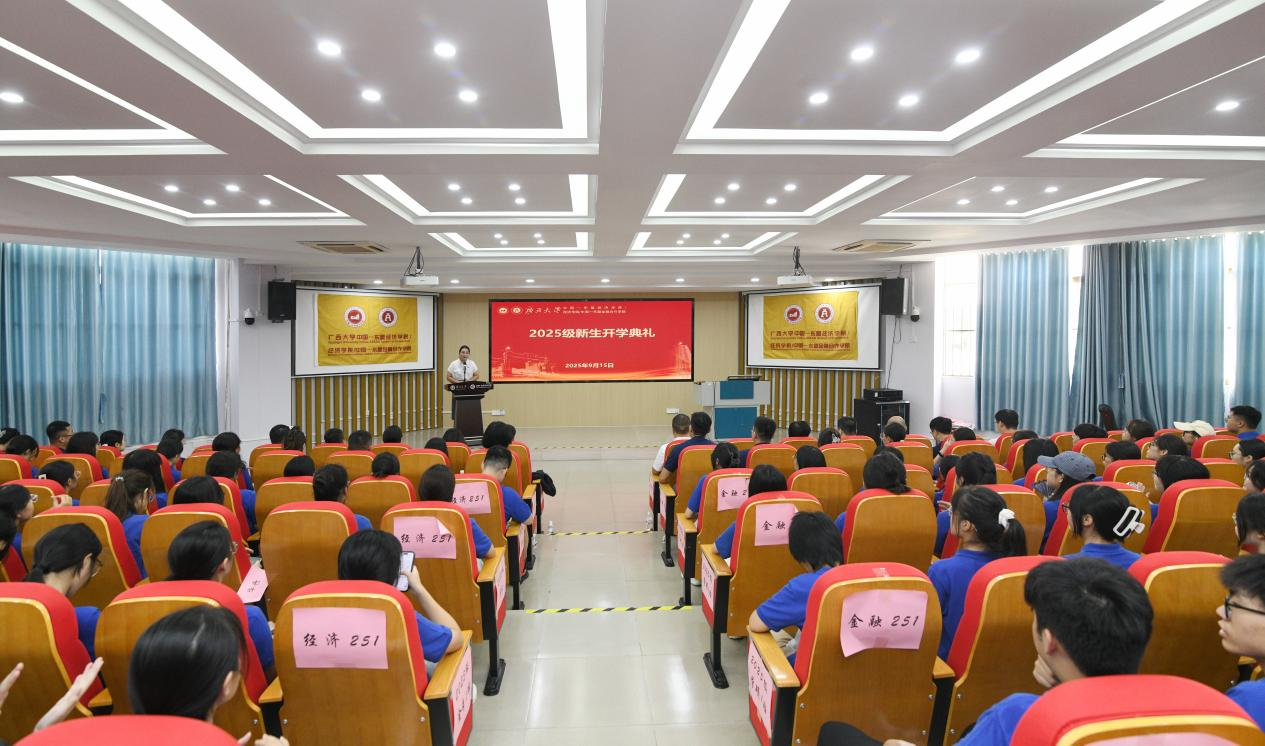 金秋送爽,丹桂飘香。9月15日上午,我校中国—东盟bat365中文官网登录入口/bat365中文官网登录入口/中国—学院2025级新生开学典礼在214报告厅隆重举行。中国—东盟bat365中文官网登录入口党委常务副书记姜玮、院长李光辉、常务副院长梁运文、副院长谭春枝、副院长梁权熙、副院长杨璞、副院长公正,以及学院教师代表、各系主任、班主任、研究生导师和全体2025级新生共同出席本次典礼,学院党委副书记刘梦娟主持典礼。