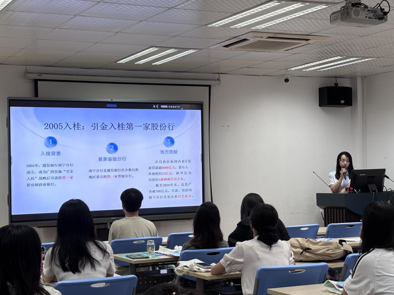 浦发银行南宁分行代表通过生动的讲述,系统展示了银行的发展历程、企业文化、核心业务板块以及清晰的员工职业发展通道与具有竞争力的薪酬福利体系。宣讲内容不仅勾勒出浦发银行作为现代金融机构的宏伟蓝图,更传递出对青年人才成长的真切关怀。
