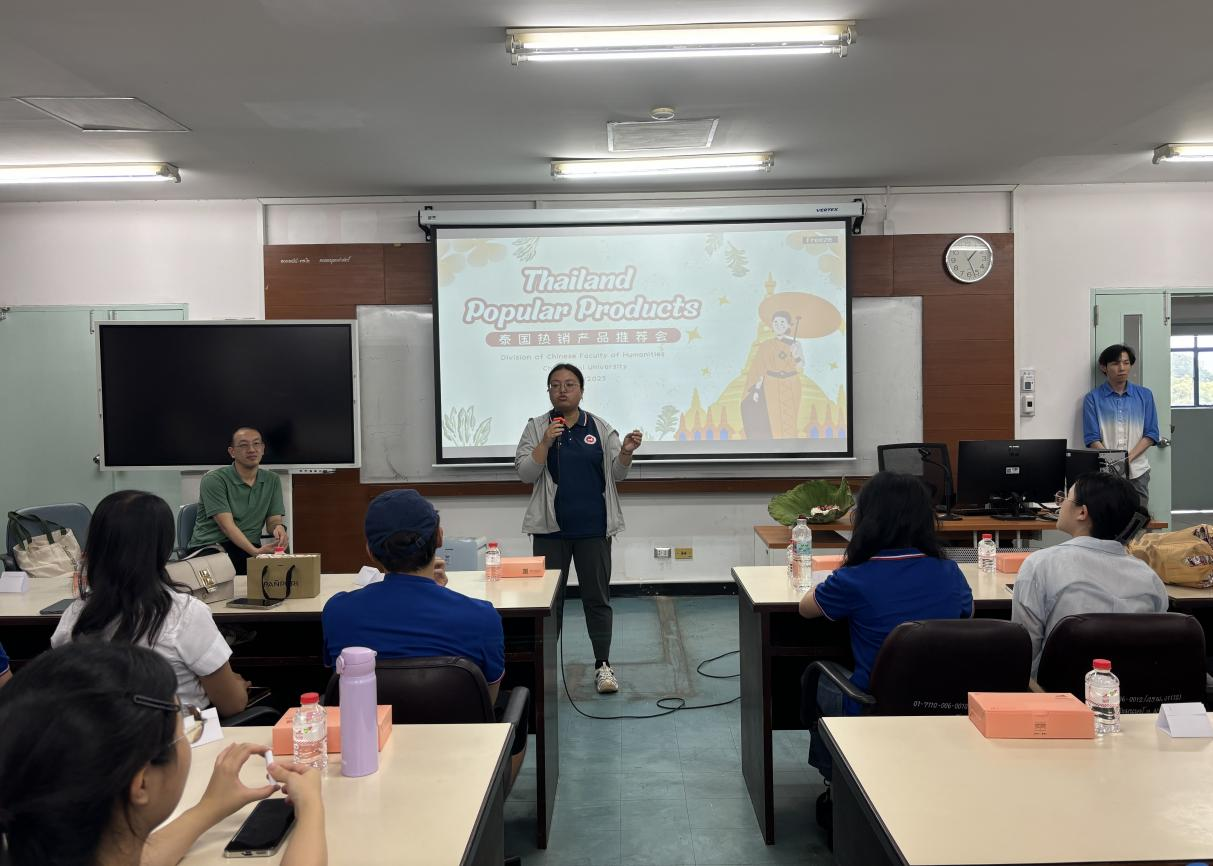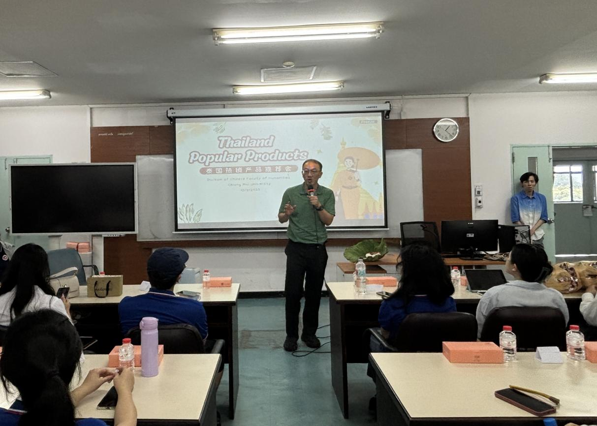 交流会的开场由清迈大学人文学院中文系的古梦玉老师率先登台致辞。她满怀热情地欢迎来自我校的交流访学团,并说:“中泰两国地缘相近、文化相通,我们希望通过此次交流让两校青年在学术碰撞中增进理解,成为中泰友好传承的桥梁。”紧接着,清迈大学CAMT数字学院副院长李雄鹰老师强调:“我们的‘产品+文化’协作模式,将帮助中泰青年在展示专业能力的同时,深入挖掘产品背后的文化内涵,推动两校合作向更广阔的领域拓展。”