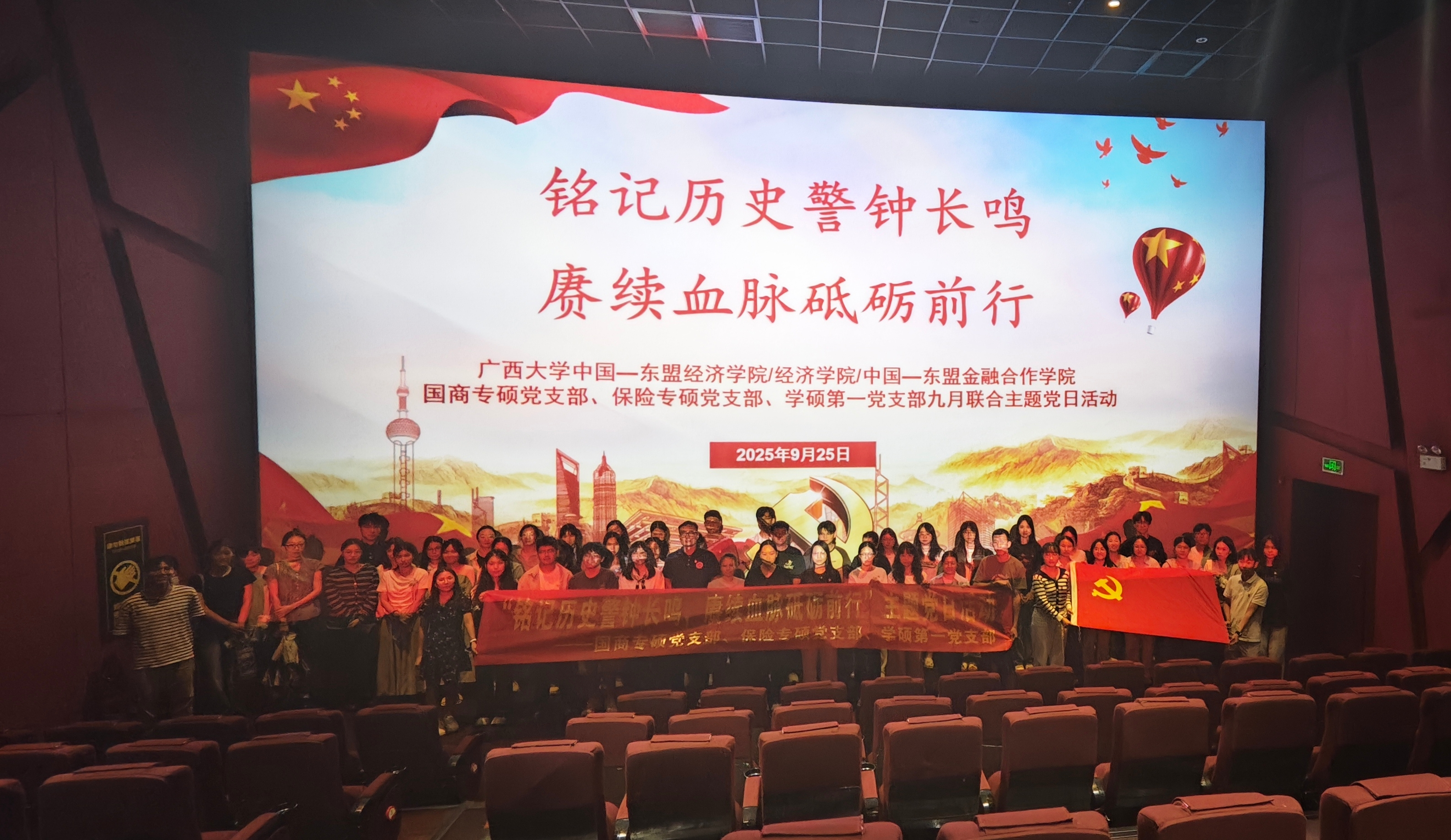 为深化爱国主义教育,传承红色基因。在9月30日烈士纪念日来临之际,bat365中文官网登录入口国商专硕党支部、保险专硕党支部与学硕第一党支部联合举办“铭记历史警钟长鸣,赓续血脉砥砺前行”红色观影主题党日活动,组织党员集体观看历史题材影片《731》,以影像为桥梁,回溯民族记忆,缅怀逝去同胞,凝聚前行力量。