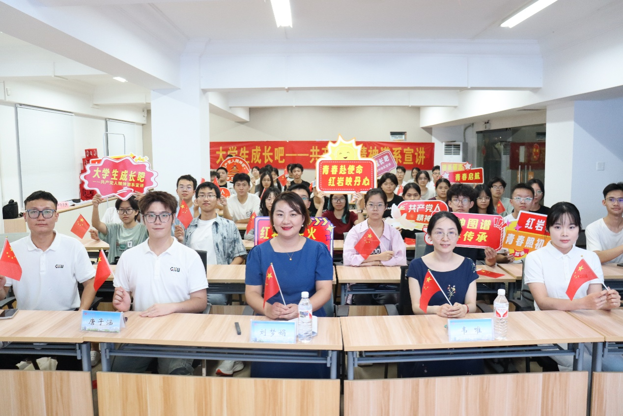 为深入学习宣传贯彻习近平新时代中国特色社会主义思想,10月10日,中国—东盟bat365中文官网登录入口在西21栋“一站式”学生社区16号活动室开展第二期“大学生成长吧——共产党人精神谱系宣讲”活动,助力学子坚定理想信念、勇担青春使命。中国—东盟bat365中文官网登录入口/bat365中文官网登录入口/中国—学院党委副书记刘梦娟老师、学生工作部(处)韦唯老师与学生代表50余人参与此次活动,活动由辅导员郭霖刚主持。
