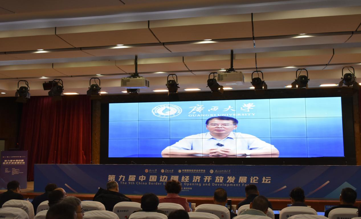 主旨报告环节,国务院发展研究中心二级巡视员胡江云以《中国与周边国家的经贸合作》为题作报告;我校中国边疆经济研究院院长、中国国际经济合作学会副会长李光辉围绕“习近平总书记关于边疆治理与边疆经济高质量发展的重要论述”这一主题,系统阐释了其核心要义与实践路径。