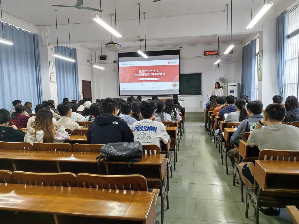 2025年10月28日上午,中信期货研究所高级研究员程也受邀到访bat365中文官网登录入口,在第三教学楼405教室为全体25级金融专硕同学作主题为“生猪产业投研分析与风险管理”的专题讲座。