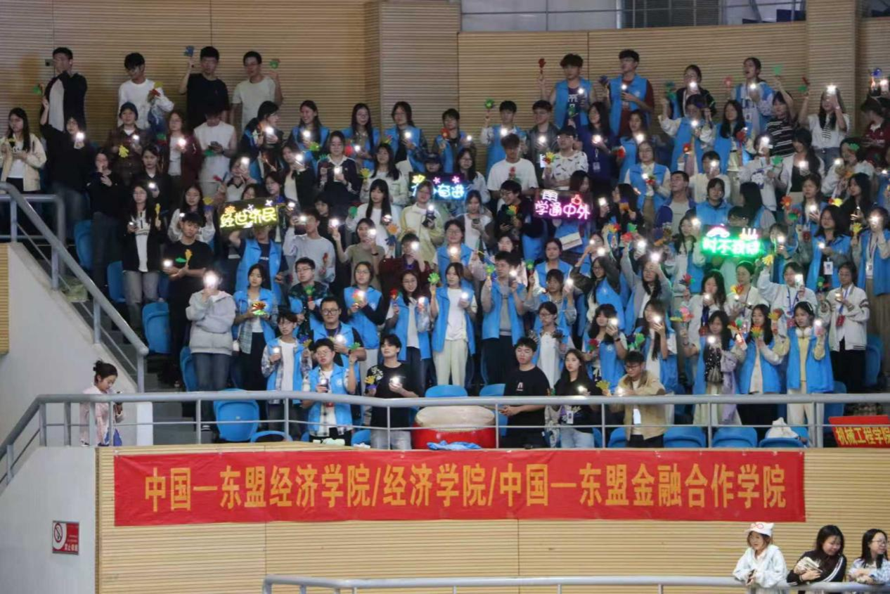 赛场上,队员们动作整齐划一,队形变换流畅自然,将力与美的完美融合展现得淋漓尽致。伴随着“经世济民,力争奋进;学通中外,时不我待”的嘹亮口号,整个团队展现出的专业素养和精神风貌赢得了评委和观众的一致认可。现场掌声雷动,欢呼声此起彼伏,将比赛气氛推向高潮。