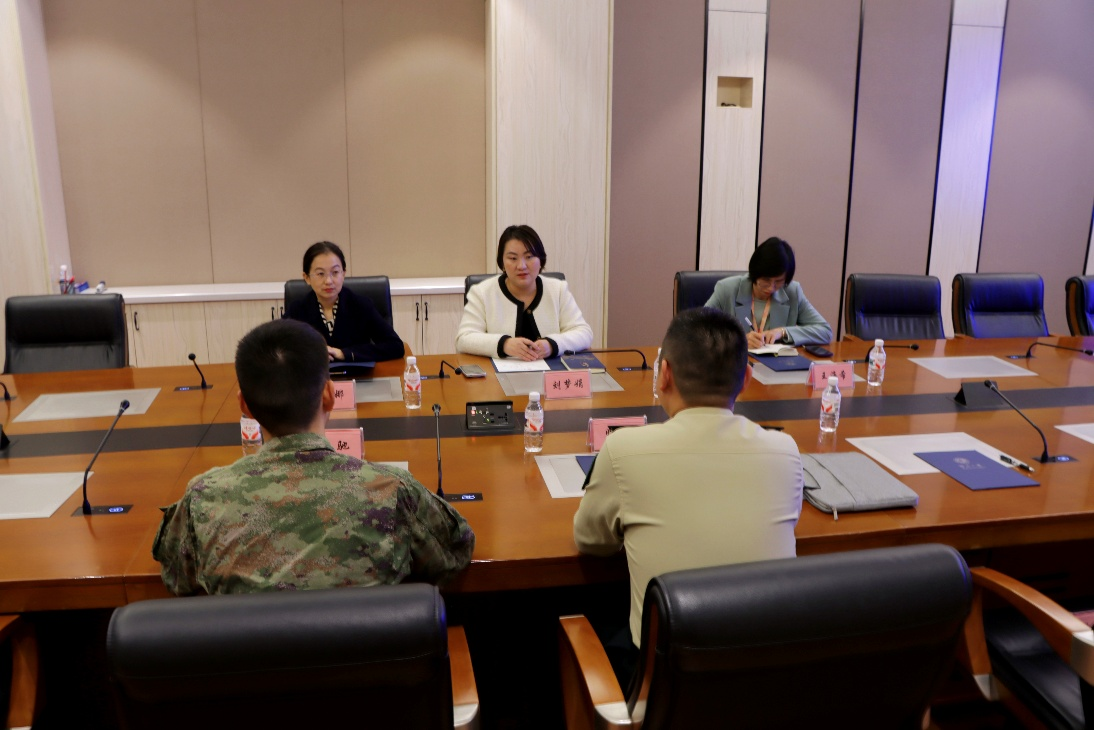 活动伊始,院党委副书记、纪委书记刘梦娟会见了中央军委审计署南宁审计中心党委副书记帅元一行。双方围绕人才联合培养、精准输送等议题进行了亲切交流,共同展望了军地协作育人的广阔前景。院团委书记王海希、学工组辅导员于娜、南宁审计中心军官张弛、文职人员蒋卓欣参与座谈。