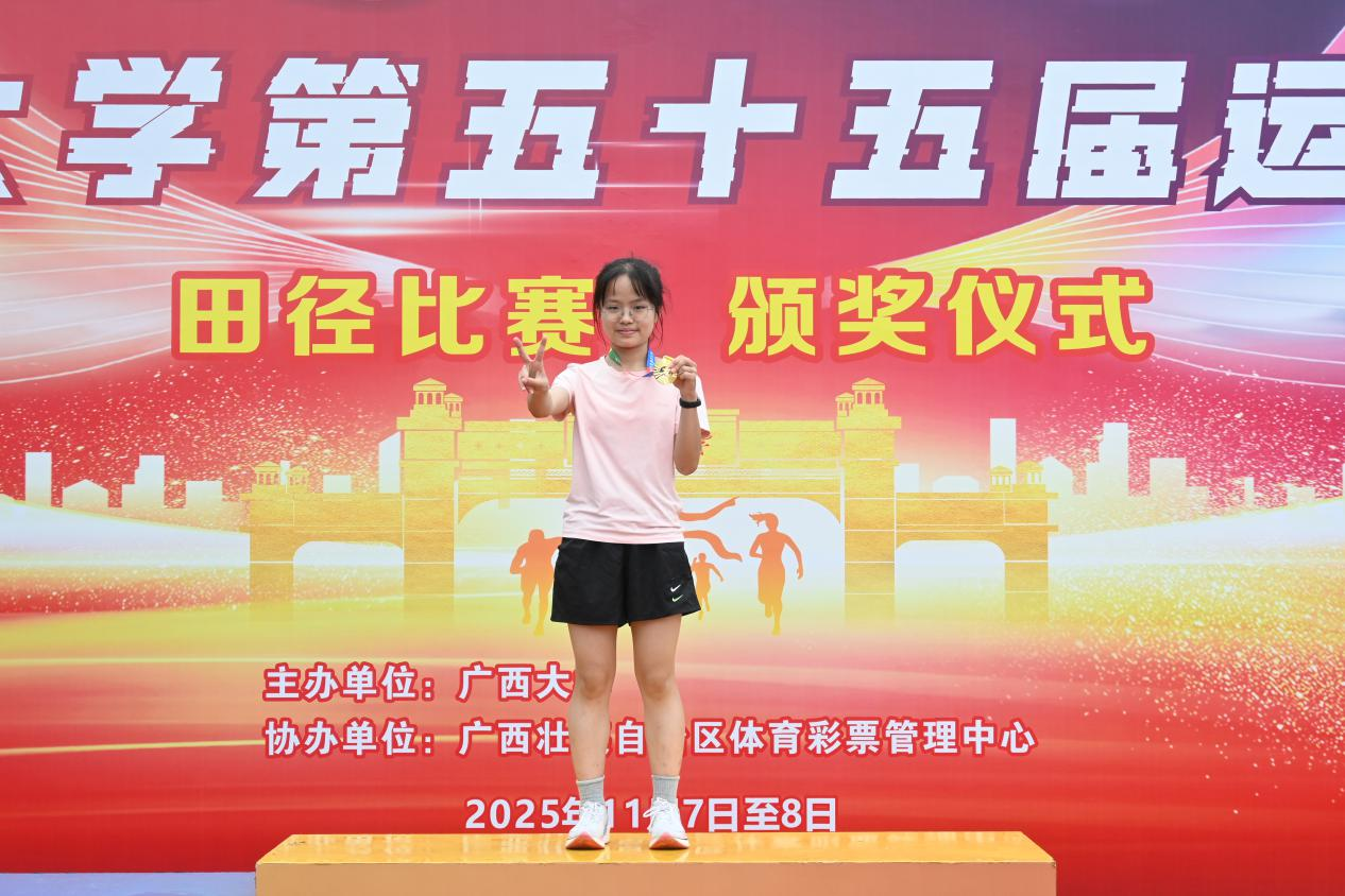 我院金融251班余燕800米跑冠军领奖荣誉时刻