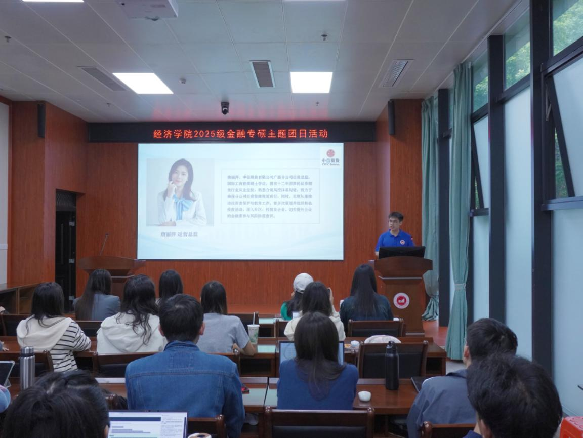 当金融诈骗的魔爪伸向校园,谁来为未来从业者守护第一道防线?11月7日,我院2025级金融专硕新生迎来了一堂特殊的"必修课"——中信期货广西分公司运营总监唐丽萍受邀讲授"金融反诈",将风险防范的战线前置到了职业生涯的起点。