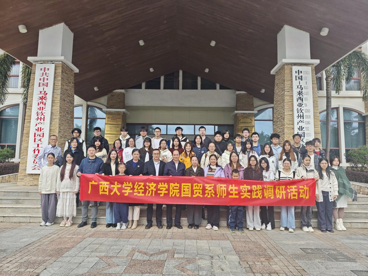 为精准把握广西北部湾港贸易、物流及临港产业发展脉搏,强化高校服务地方经济建设效能与学生实践能力,深化与钦州港片区的交流与合作,12月15日,我院国贸系刘主光教授、李红教授、王玉洁副教授、陈伟宏副教授、韦苏倢副教授、蒋诗琪博士带领我院国际经济与贸易专业本科生及部分研究生一行50人赴钦州自贸片区开展实地调研。钦州港片区贸易与物流发展局局长林纲、工作人员潘金鑫校友陪同调研。
