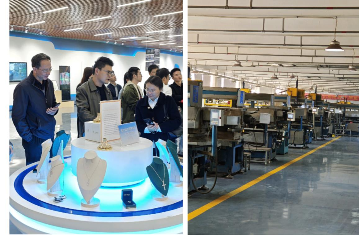 更引人注目的是公司的电商直播基地。一个个直播间里,主播们正用流利的语言向国内外客户展示着璀璨夺目的宝石产品,线上下单、即时互动,销售场景如火如荼。这种“现代制造+直播电商”的新模式,极大拓展了市场空间,特别是精准对接了欧盟、东盟等海外市场的消费需求,是数字技术与实体经济深度融合、赋能传统产业焕发新活力的典型例证。老师们就跨境电商发展、国际营销渠道建设、知识产权保护等话题与企业深入交流,思考如何更好利用国内国际两个市场、两种资源。