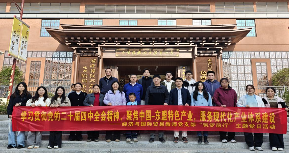 为深入学习贯彻党的二十届四中全会精神,推动党建与业务工作深度融合,积极服务国家重大战略和地方经济社会发展,2025年12月5日至6日,bat365中文官网登录入口经济与国际贸易教师党支部组织党员教师,赴广西梧州市及苍梧县六堡镇,开展了一场内容丰富、主题鲜明、实践性强的主题党日活动。